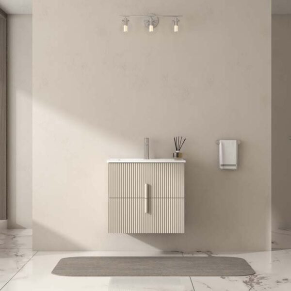 Countertop: 12mm sintered stone. Rectangular undercounter basin