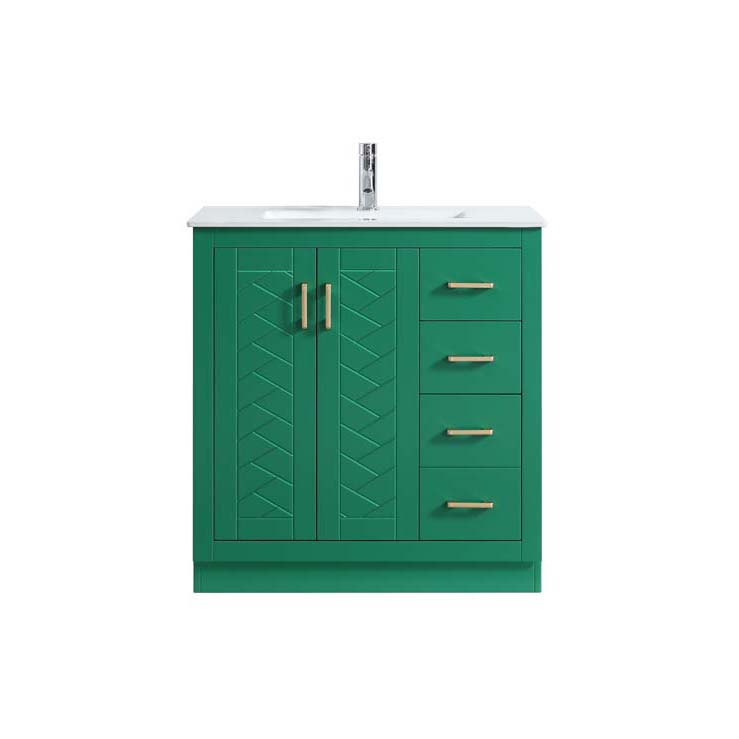 Ceramic basin MDF material with outside and inside both painting,,inside with one shelf .soft close for doors and three drawers ( see picture ),chrome plated handles. Excludes faucet and Pop-up, the packing with 1.5Cm thickness foam
